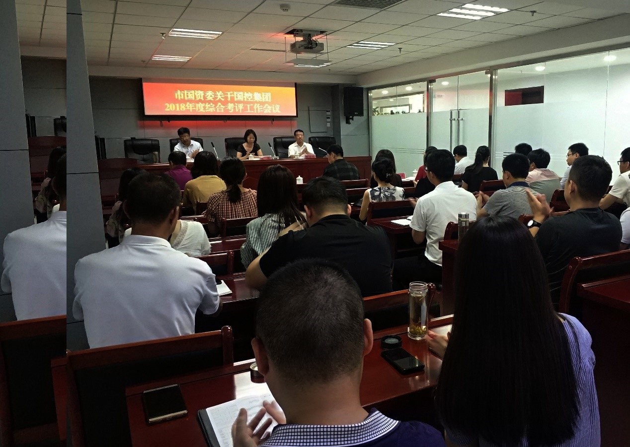 2019年7月18日,市国资委关于U8平台2018年度综合考评工作会议在集团公司本部第一会议室召开,会议由市U8平台总经理徐俊儒主持,董事长张建军做《2018年度工作完成情况的报告》,市国资委党委委员、副主任张楠出席会议并讲话,集团公司本部及资产运营公司全体员工参加。