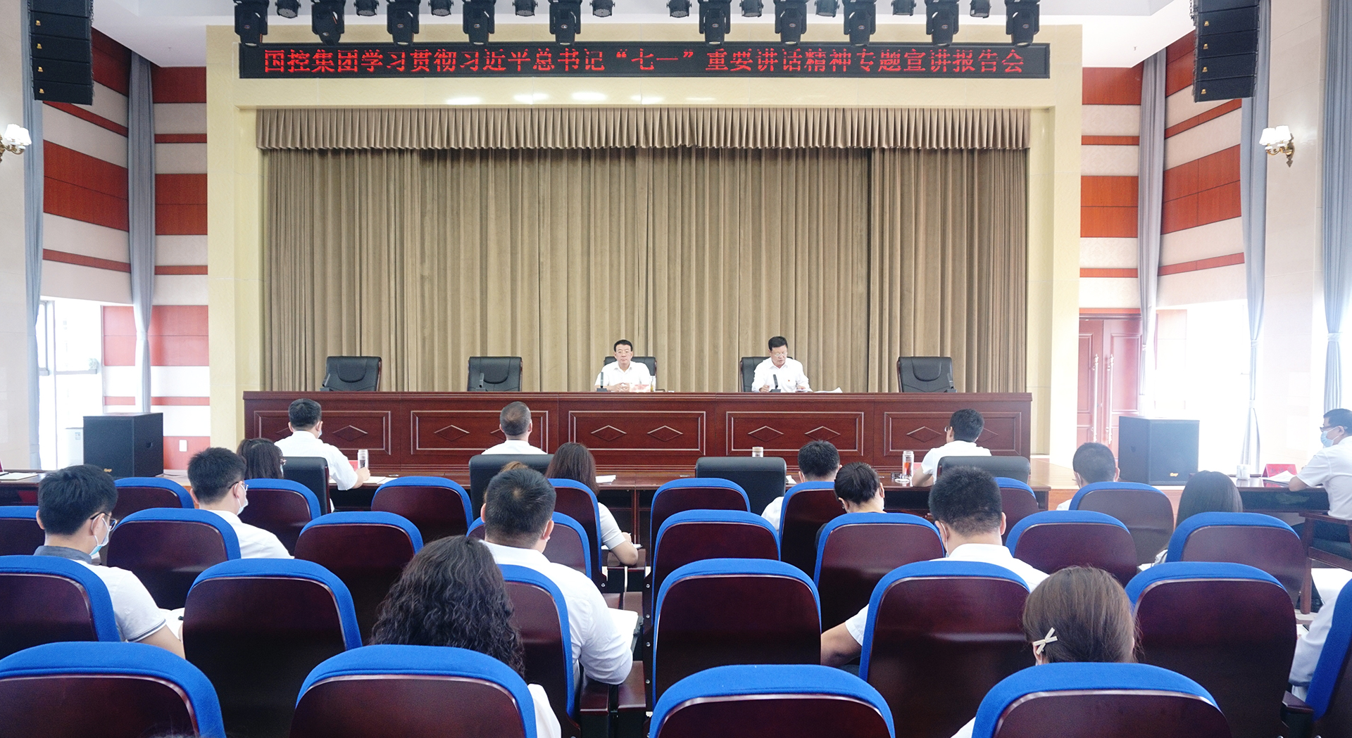 8月13日上午,U8平台召开学习贯彻习近平总书记“七一”重要讲话精神专题宣讲报告会。集团公司党委书记、董事长张建军同志向广大党员干部职工作专题宣讲报告,党委副书记、总经理徐俊儒主持会议,领导班子全体成员、全体党员、本部全体职工及实际控制子公司中层及以上管理人员参加会议。