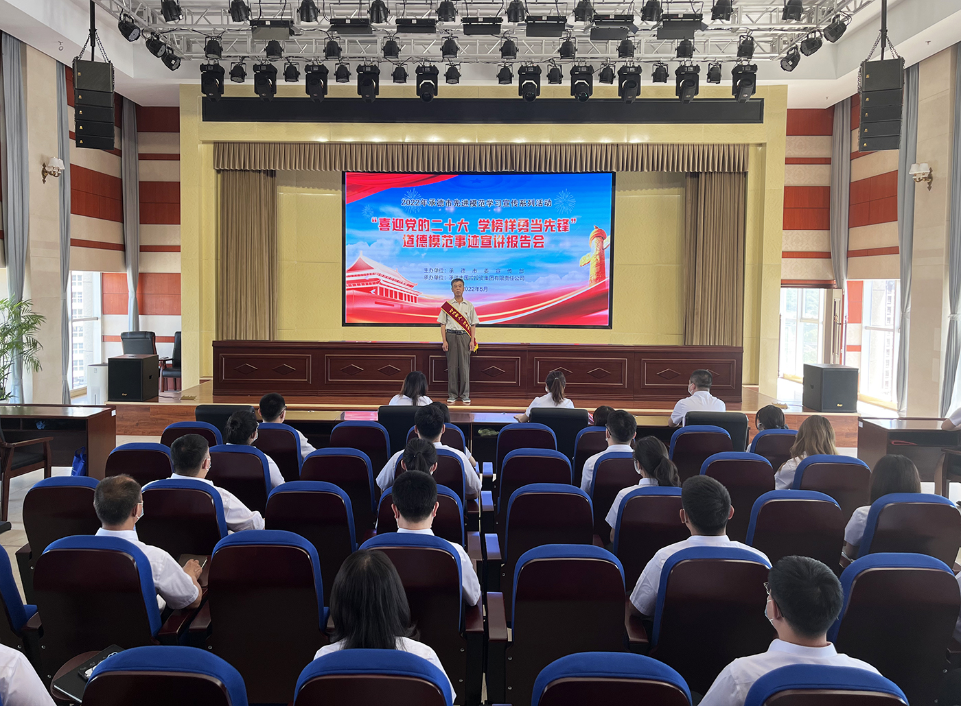为进一步发挥“新时代承德榜样” “道德模范”先进典型的示范引领作用,大力弘扬塞罕坝精神,全面助力“四个再建功立业”,汇聚起公司高质量发展的精神动力,喜迎党的二十大胜利召开,5月27日,由市委宣传部主办的“喜迎党的二十大 学榜样争当先锋”道德模范事迹宣讲报告会在U8平台成功举行。