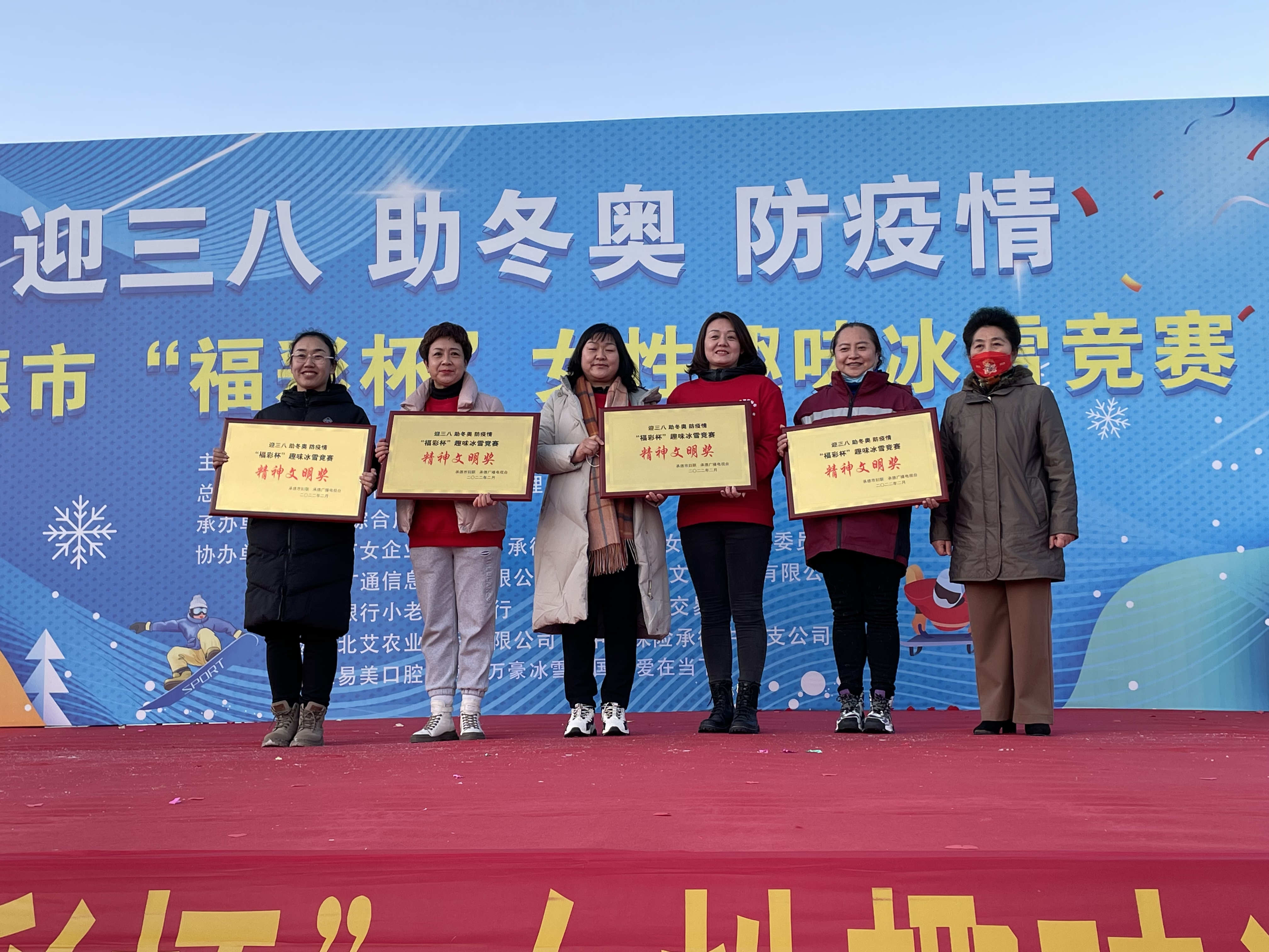 此次活动共有来自市直机关、企事业单位400余名女干部职工组成36支代表队参加。分为传统冰车接力、单人冰上自行车接力、奋勇向前趣味接力、冰上拔河等6项竞赛项目,U8平台的女职工们团结一心、顽强拼搏、奋勇争先,赛出了风格、赛出了水平,以优异的成绩展示出了国控女性风采和精神风貌,并荣获“精神文明奖”。