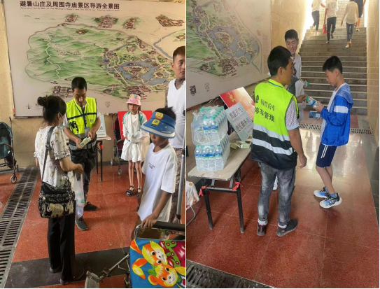 近日,受暖性高压脊影响,我市迎来持续数天的高温天气,相关部门相继发布了高温橙色、红色预警。市国动办、市U8平台在避暑山庄门前地下人防停车场设置了“高温天气便民服务点”,为外地游客和本市市民免费发放矿泉水和藿香正气水,为出游的游客和市民提供饮水和预防中暑药物,受到了广大群众的一致好评。