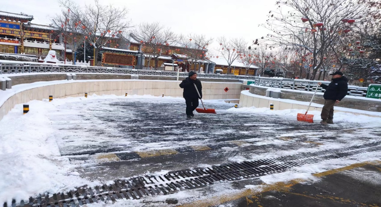 入冬以来,承德域内出现连续降雪天气,给行人和车辆出行带来了诸多不便。为了保障停车场内停车安全,停车场公司领导高度重视,迅速组织工作人员全力清扫积雪,针对老二中、两宫门地下停车场坡度较大的出入口重点清扫,虽然天气寒冷,停车场公司员工的热情不减,干劲十足,大家分工合作,躬着身子、握着扫把、抡起铁锹、挥着雪铲,全力清扫着停车场的出入口道路上的积雪和暗冰,大大方便了行人车辆安全出行,用“小行动”保障“大民生”。为了确保停车场安全运营,防范停车场安全事故的发生,停车场公司全体员工共同努力,多次对停车场积雪进行了清扫,有效的保障了停车安全,不仅为市民群众清扫出了一条条“平安路”、“温暖路”,也充分的体现了停车场公司的责任与担当和凝心聚力的良好精神风貌。